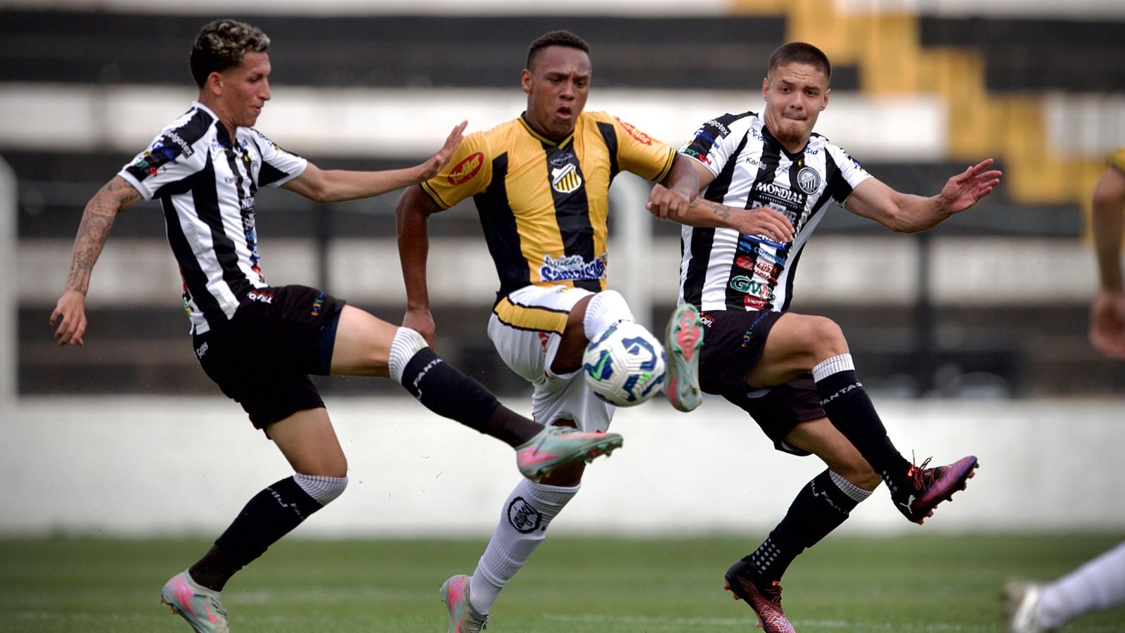 Entretanto, mesmo com a vantagem, o Novorizontino não abdicou de atacar. Aos 20′, Pedro Balotelli recebeu na área e finalizou na trave.