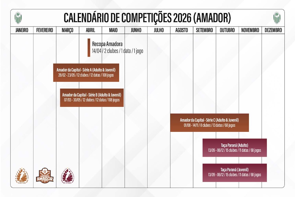 Confira o calendário com as competições organizadas pela Federação Paranaense de Futebol.